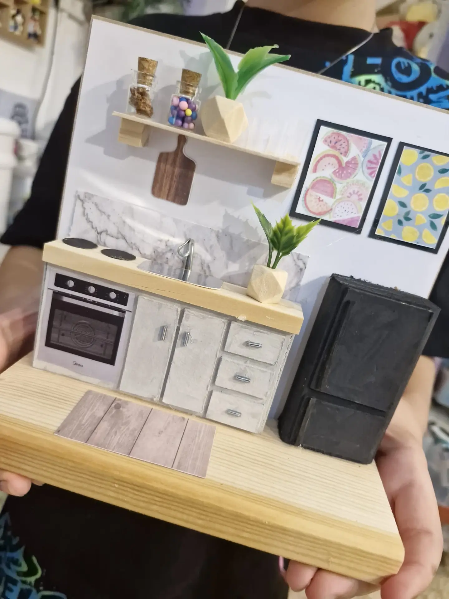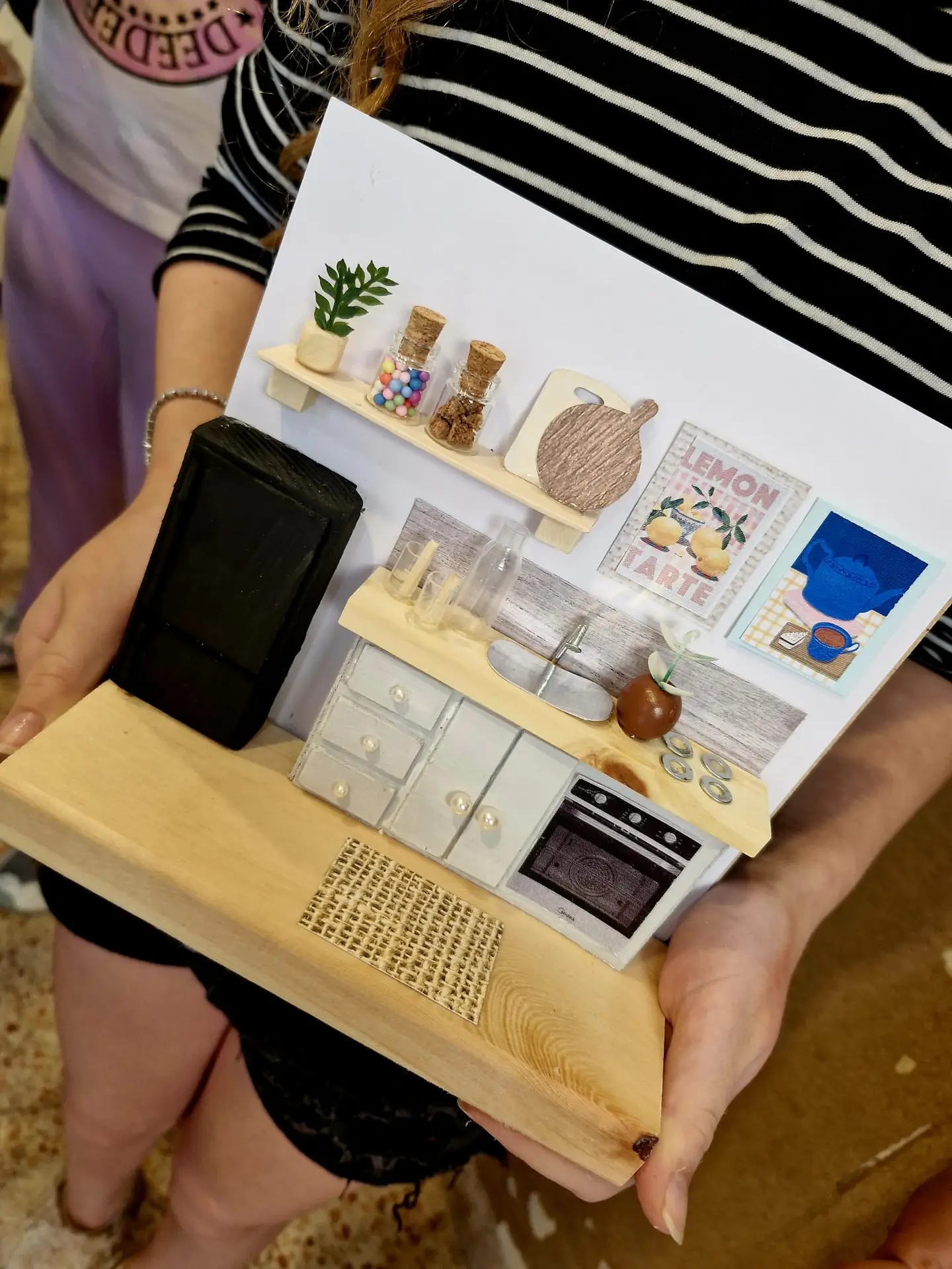 סדנת עיצוב ובנייה של מטבח מיניאטורי מתוק עם כל מה שצריך לבישול מיניאטורי דמיוני 🙂 מגיל 8 ומעלה.