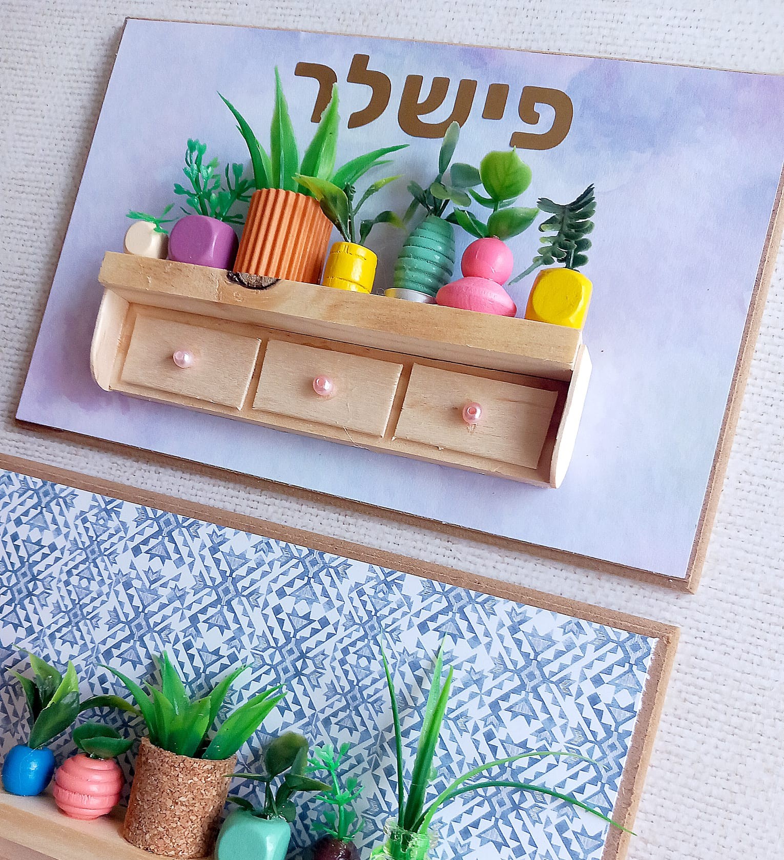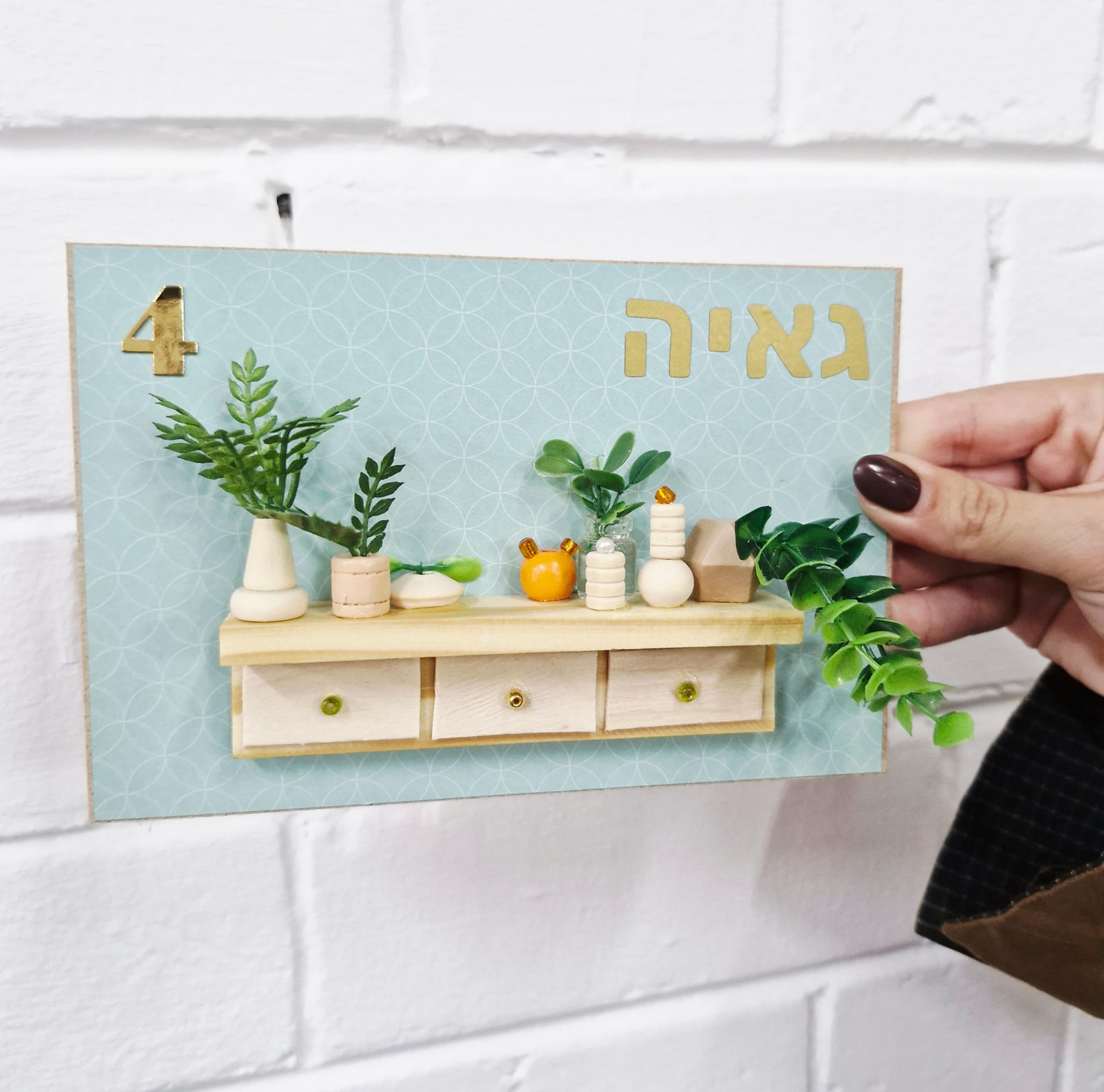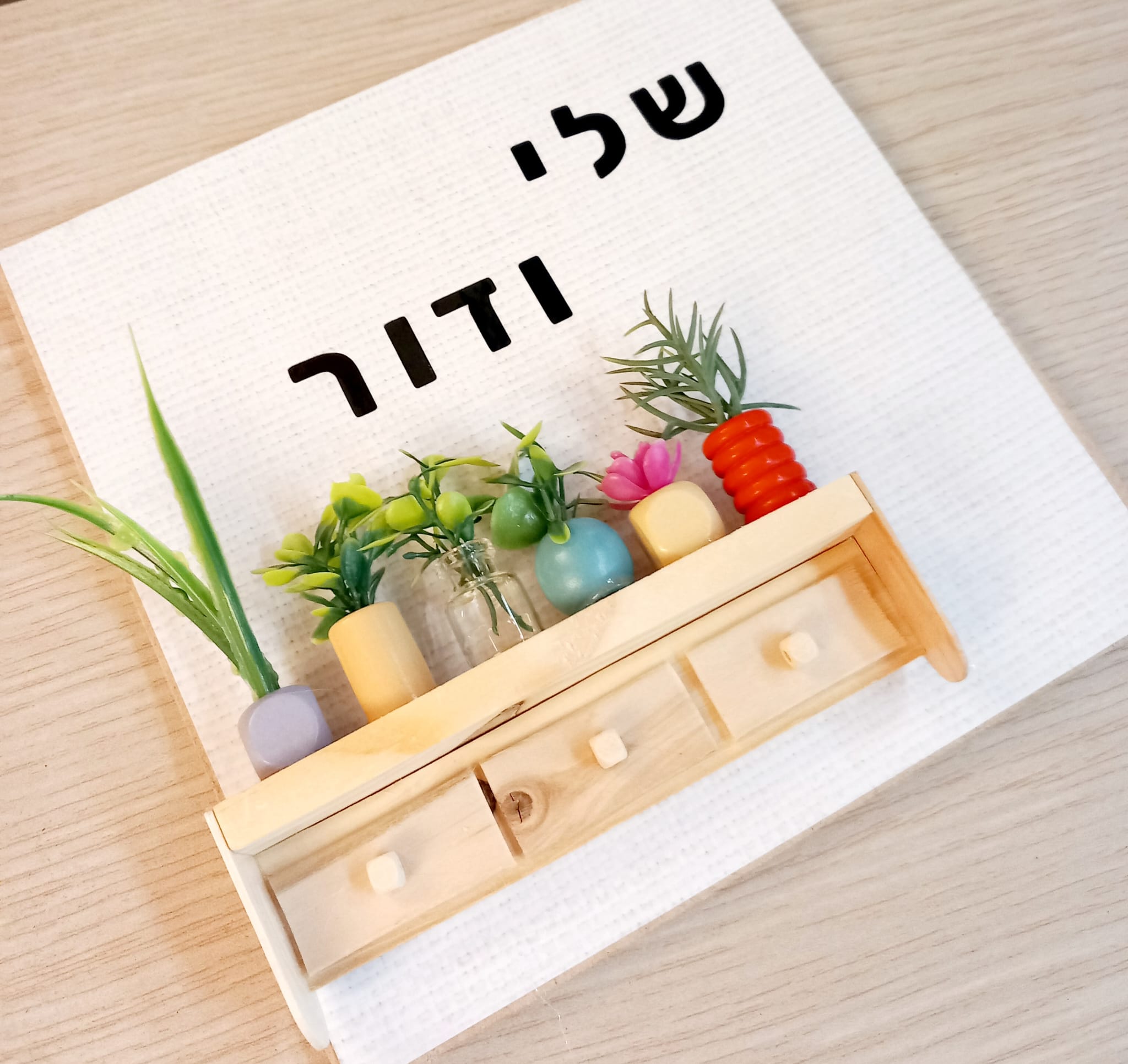 ערכה ליצירת שלט לדלת עם מיניאטורת מדף עציצים. מתאימה כל הגילאים!